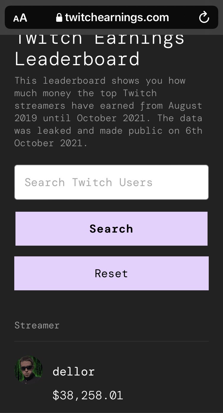 The data was made public on 6th October 2021. Twitch Earnings Leaderboard Hacker News. A board that ranks streamers according to how much money they earn from Twitch.